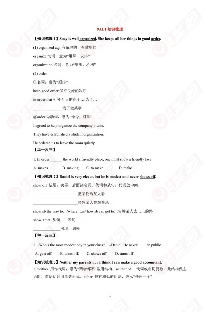 江苏译林版九年级英语上册9AUnit 1-5知识点梳理丨专题复习