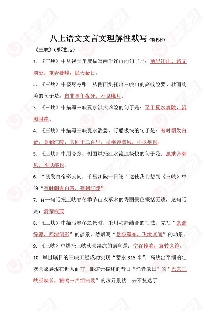 统编版语文八年级上册古诗文理解性默写_同步复习