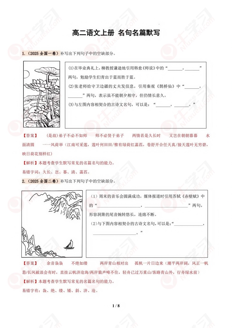 统编版高二语文上学期期中复习名句名篇默写_含答案.pdf